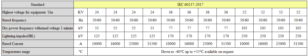 From 5000A to 35,000A. Normally for connecting the oil-filled power transformer to a generator bus.
