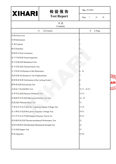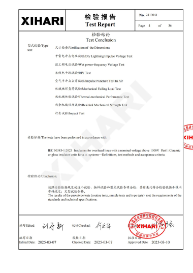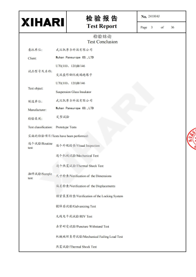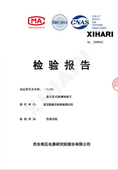 Test Report for glass insulator Model U120B:                      Test Report for glass insulator Model U160B:                   Test Report for glass insulator Model U210B: