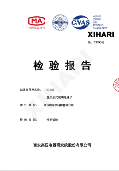 Test Report for glass insulator Model U40B:                        Test Report for glass insulator Model U70B:                         Test Report for glass insulator Model U100B: