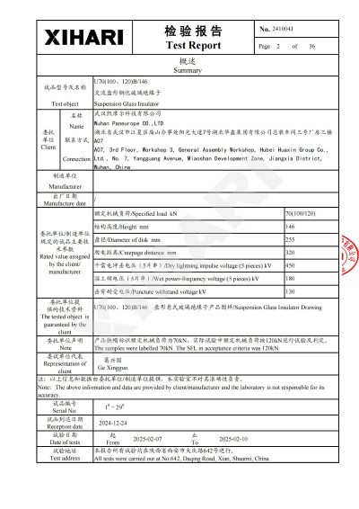 Test Report for glass insulator Model U240B: Test Report for glass insulator Model U300B: